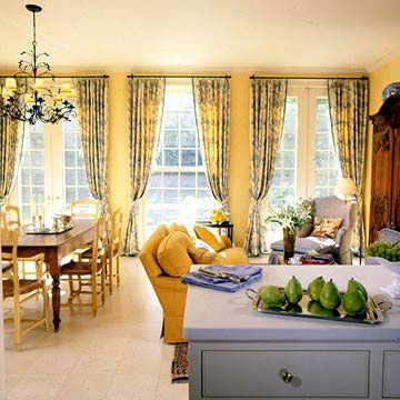 A beautiful living room in the yellow I like with pink. I love the sunny bright yellow.