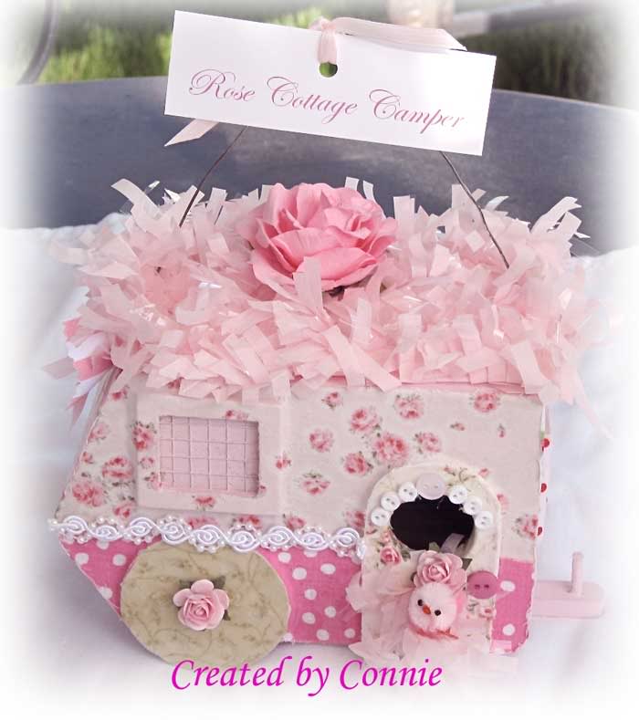 Birdhouses are absolutely my favorite thing to create. I've created several and sold or given them away as presents or giveaways. I use fabric mostly as that's the medium I love most—gorgeous romantic, shabby, chic, roses fabric.