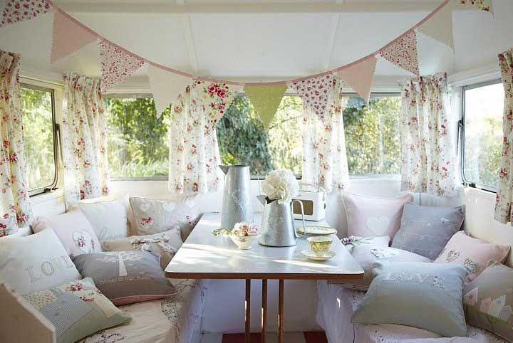 If I had to camp, this would be my ideal camper. Lots of windows, pillows and flowers. A bunting. But then I'd have to camp and we all know how I feel about going off into the wilds of Idaho. NO!