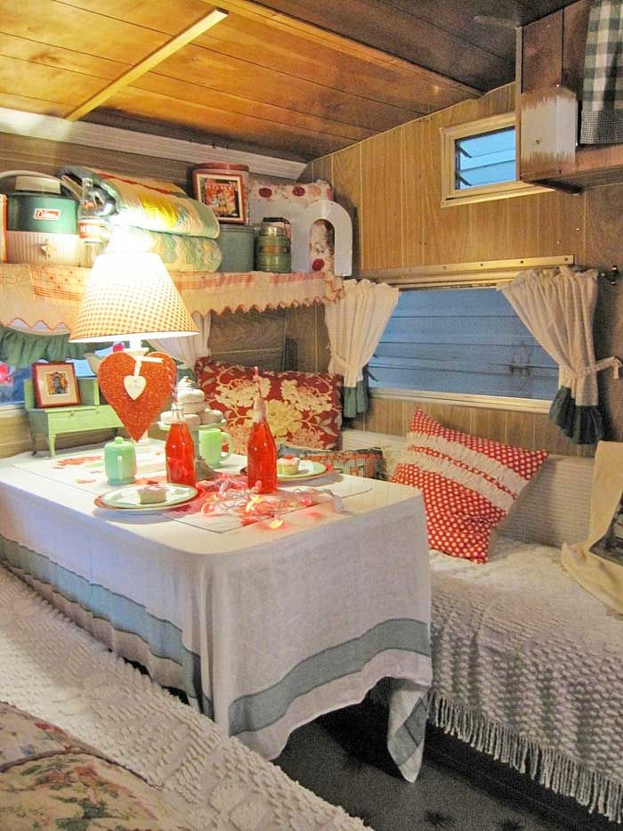 Now, I have to admit that this little beauty and this setting would definitely entice me to go camping. I shan't mention it to Love Bunny or he just might try to go out and find one so I'll camp with him again. But this is a beautiful dinner setting for a trailer.