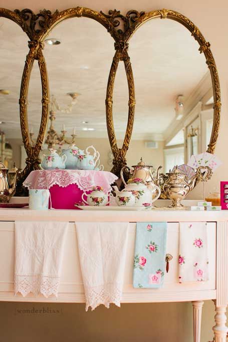 While this is a fetching bathroom, all that lace would certainly collect dust. Just kidding. It's actually wallpaper.